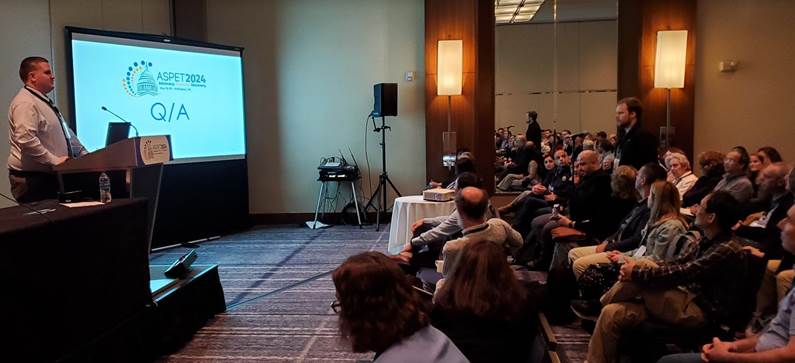 Karim was also invited for an oral/podium presentation in a limited event on the use of machine learning/AI in drug discovery and pharmacology education. There were 3 panelists in this podium presentation and aside from Karim, the other two are senior directors from AstraZeneca and Allucent. Karim's podium presentation was very well received and he received an on-the-spot offer from an FDA recruiter for an FDA-based post-doctoral training. Here are the first 5 minutes of his podium presentation. Experiential Education