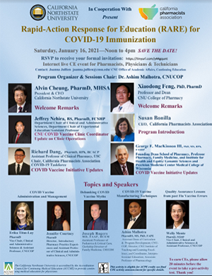 • Tuessday, Feb 22, 2022 - 6:00pm to 7:30pm: Professional Advocacy: Examing Stategies to Advance the Profession of Pharmacy
